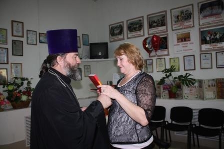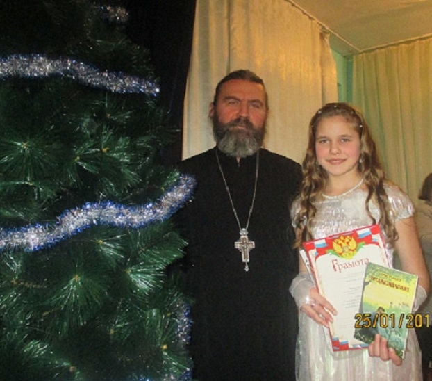 Грамоту победителя и памятный подарок ей вручили директор Дома детского и юношеского туризма, экскурсий Виктор Николаевич Лобанов и Благочинный Церквей Киселевского округа протоиерей Михаил.