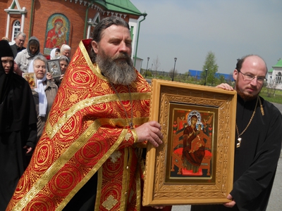 Иерей Сергий Чуковитов, ключарь монастыря, сопровождающий икону Богородицы в поездке по городам Кемеровской епархии, пояснил: