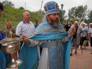 По окончании литургии отец Михаил совершил молебен иконе Божией Матери «Смоленская» и возглавил традиционный в престольный день Крестный ход вокруг храма с величальными песнопениями Небесной Покровительнице часовни, чтением Евангелия, кроплением святой водой молитвенного здания и всех участников крестного хода и богослужения. Затем батюшка обратился ко всем присутствующим с поздравительным пастырским словом. Он выразил надежду, что начавшаяся литургическая жизнь в Одигитриевской часовне будет иметь достойное продолжение, и богослужения будут совершаться регулярно. Отец Михаил искренне пожелал вахрушевцам помощи Божией и Покрова Пресвятой Богородицы как в личной жизни, так и в трудовой деятельности.