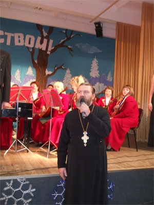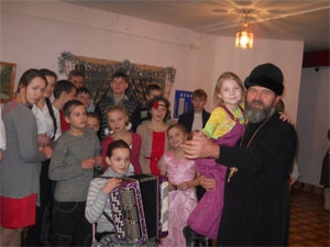 воспитанников детского дома «Радуга», постояльцев Дома сестринского ухода и Дома ветеранов. Батюшка так поясняет непреложность традиции посещения этих учреждений в Рождественский день : «Христос пришел для всех. Пусть радость Рождества Христова коснется сердца каждого человека. Нет ничего радостнее, чем дарить добро и любовь». Дарить праздник одиноким людям с батюшкой отправились в качестве артистов участники хора «Славянка», учащиеся воскресной школы, члены отряда БПС. Учащихся приходской школы – христославов с Вифлеемской звездой, колядками и подарками встречали очень радушно. В исполнении юных христославов со сцены звучали стихи и песни, тропарь Рождества. Святки исполнены радостью, и это особенно чувствуют дети: в детском доме, его воспитанники, также включились в радостное прославление